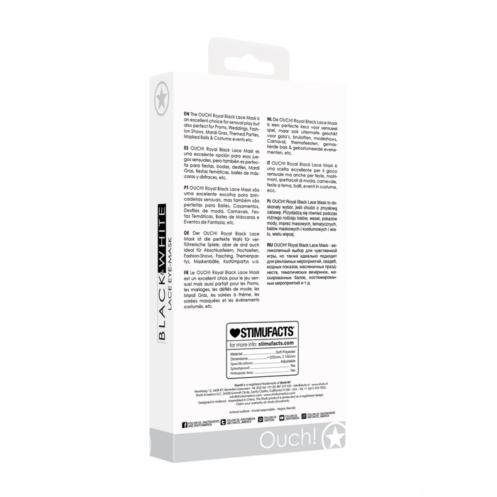 Ga voor een vleugje mysterie en een dosis klasse met het Royal Lace Mask van Ouch! Bestel discreet bij Sexshop Erovibes – snel geleverd, stijlvol verpakt en klaar om jouw fantasieën gezicht te geven.