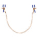 De glanzende gouden ketting van 33 cm verbindt de klemmen en nodigt uit om mee te spelen. Een lichte ruk aan de ketting, een subtiel trekken tijdens een zoen of stoot, en je voelt hoe de sensatie zich door je hele lichaam verspreidt. De blauwe accenten geven het geheel een opvallende, chique fetish-look die prachtig combineert met lingerie of bondage accessoires.